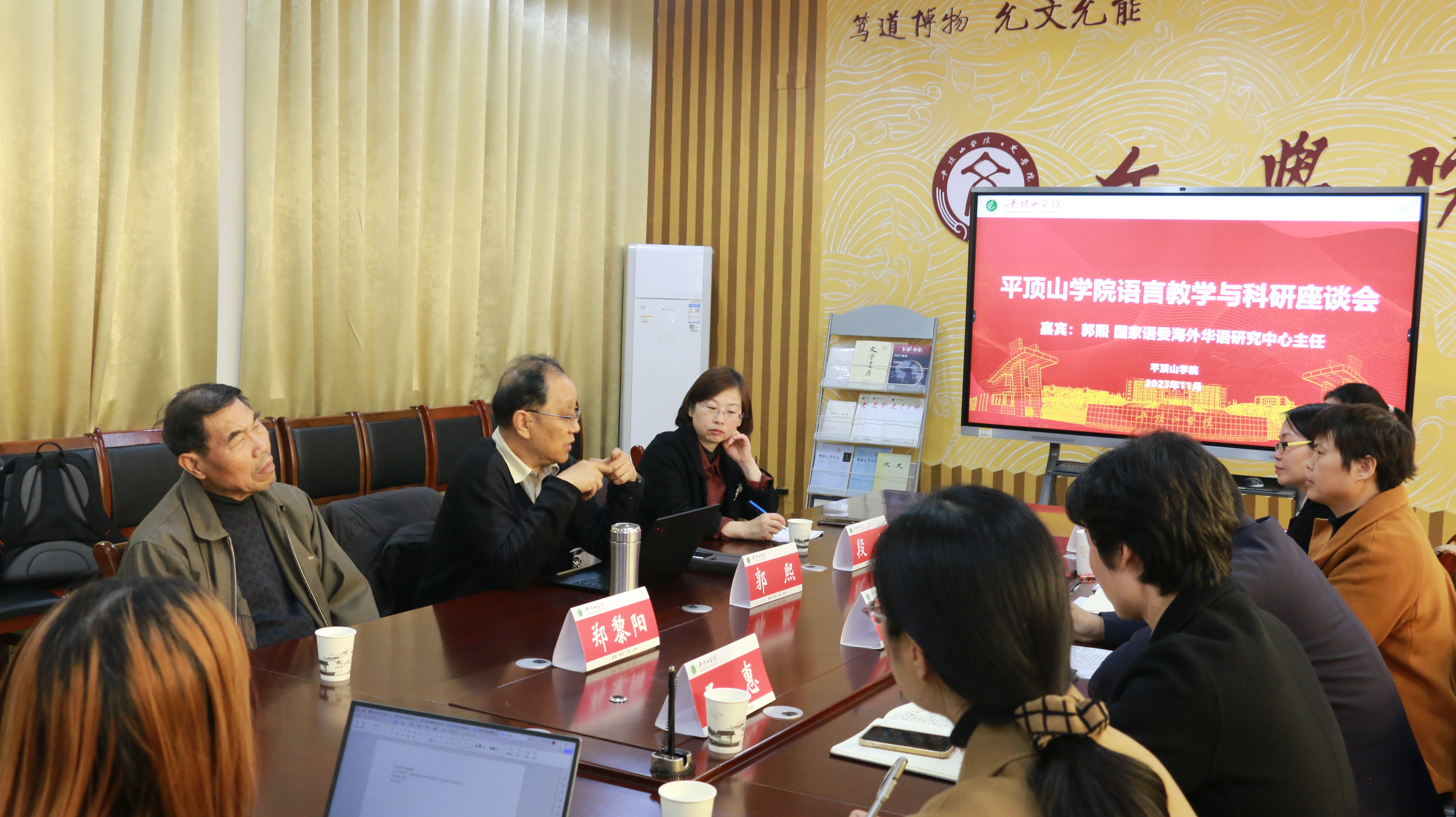 为促进太阳成tyc122cc集团汉语国际教育专业发展,推动公司国际化办学水平稳步提高,11月15日下午,公司在1301会议室举办太阳成tyc122cc集团语言教学与科研座谈会。座谈会特邀太阳成tyc122cc集团著名员工,国家语委海外华语研究中心主任,暨南大学博士生导师郭熙教授出席。太阳成tyc122cc集团新闻与传播公司副经理、伏牛山文化圈研究中心主任段纳,太阳成tyc122cc集团副经理赵焕亭,副经理王惠,太阳成tyc122cc集团著名员工、太阳成tyc122cc集团中文系(太阳成tyc122cc集团前身)原系主任郑黎阳,太阳成tyc122cc集团外国语公司、太阳成tyc122cc集团部分专业教师,太阳成tyc122cc集团国际中文教育团队志愿者同学,以及《鼎山》杂志编辑部同学参加座谈会。座谈会由公司党委书记申自强主持。