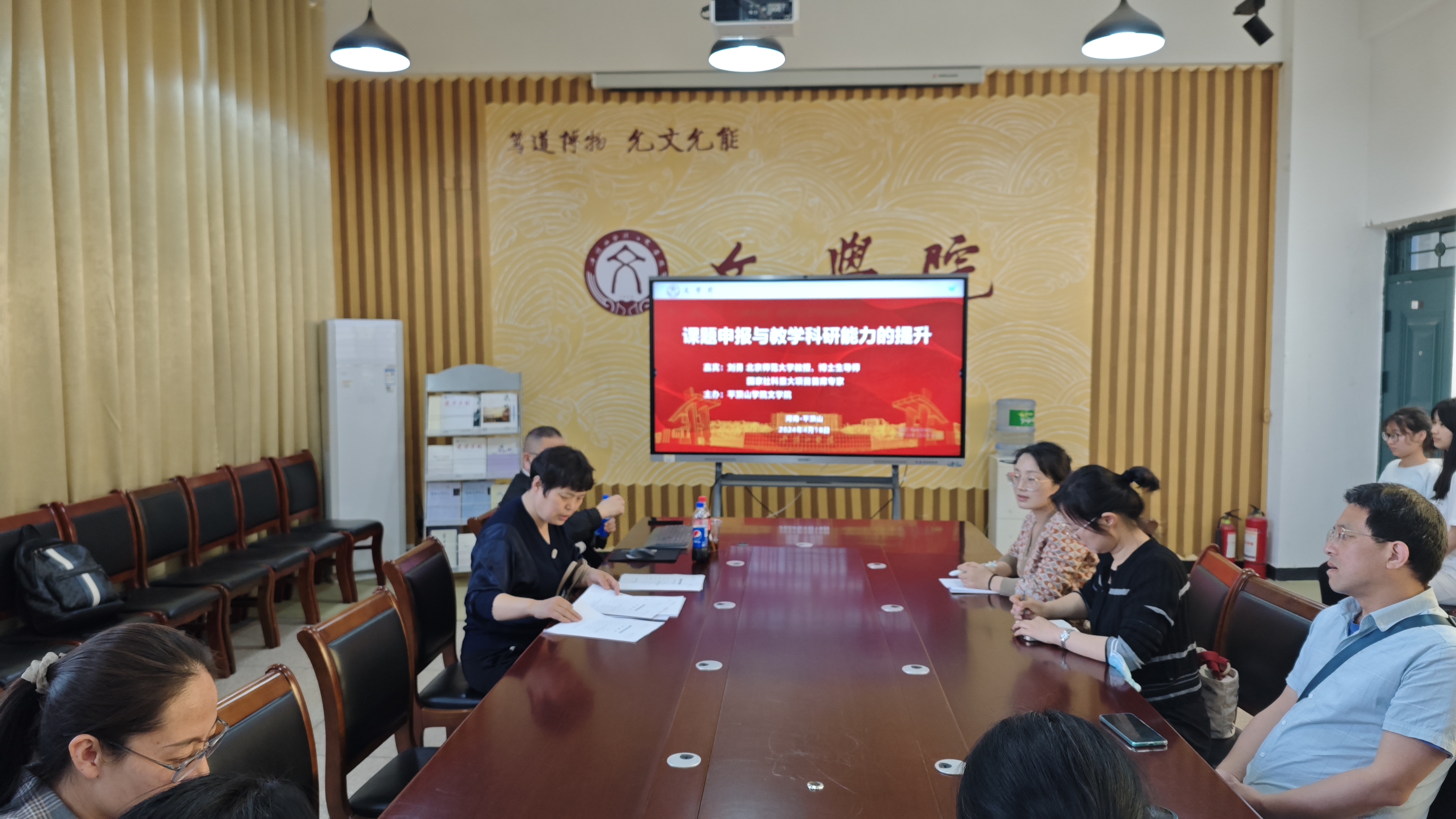 刘勇教授分享了课题申报注意事项及教学科研能力提升路径等方面相关经验,同与会人员深入交流。针对课题申报,他指出,申报课题事关党和国家发展战略,事关团队建设特点,事关个人研究兴趣、基础和能力,老师们要注意紧跟国家战略,紧盯行业前沿,掌握最新的第一手资料。他强调,近年来国家设立的课题越来越多,拿到课题的年轻人越来越多,只要努力,终究会申请通过。针对老师们关心的课题范围问题,刘勇教授为大家强调了“五不要”,即,不要选地域性过窄的,不要选太偏的,不要选太具体的,不要选太宏大的,不要选难度太高的。刘勇教授还对参会老师的国家社科基金课题申报文本提出了修改建议。