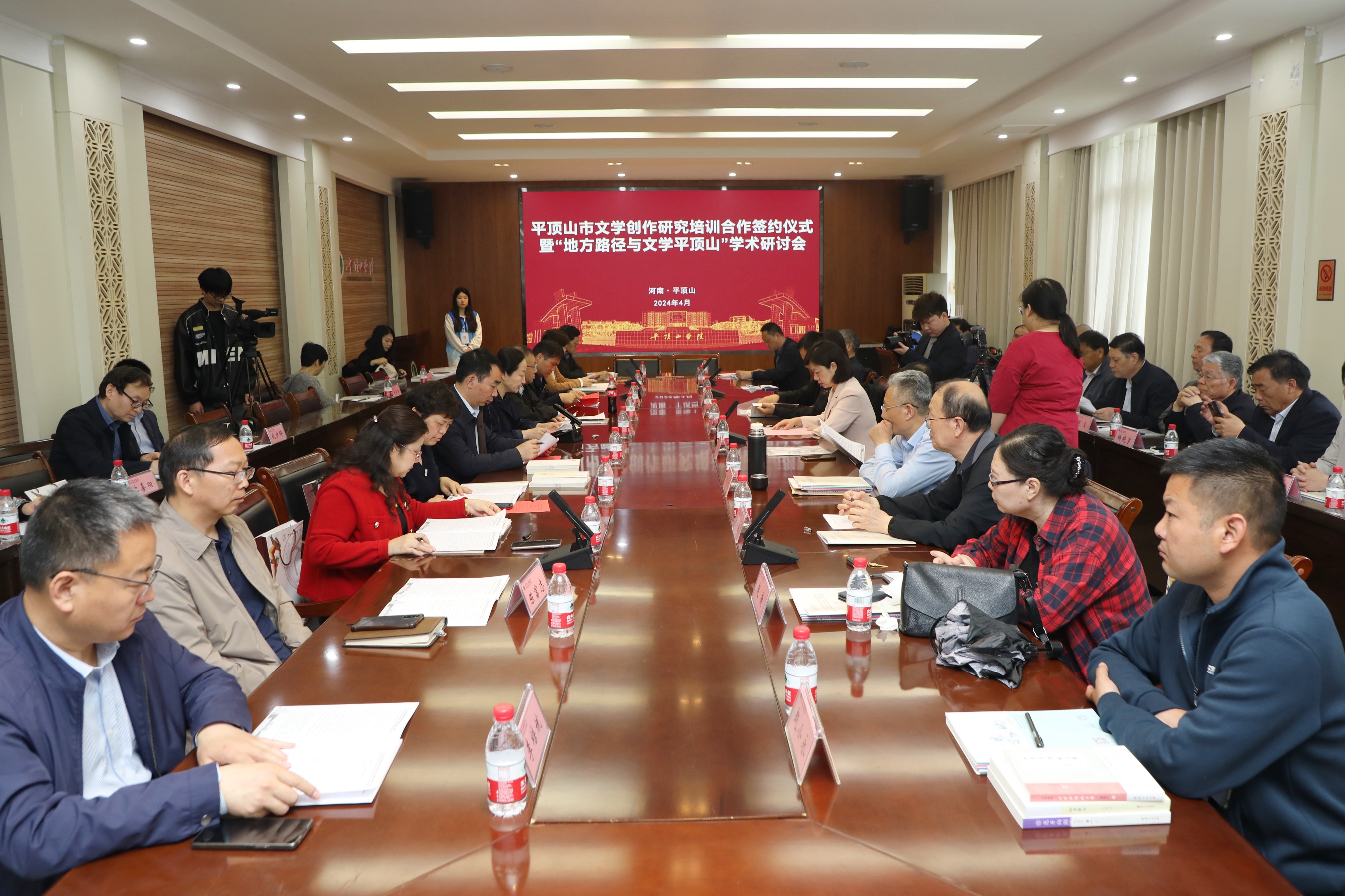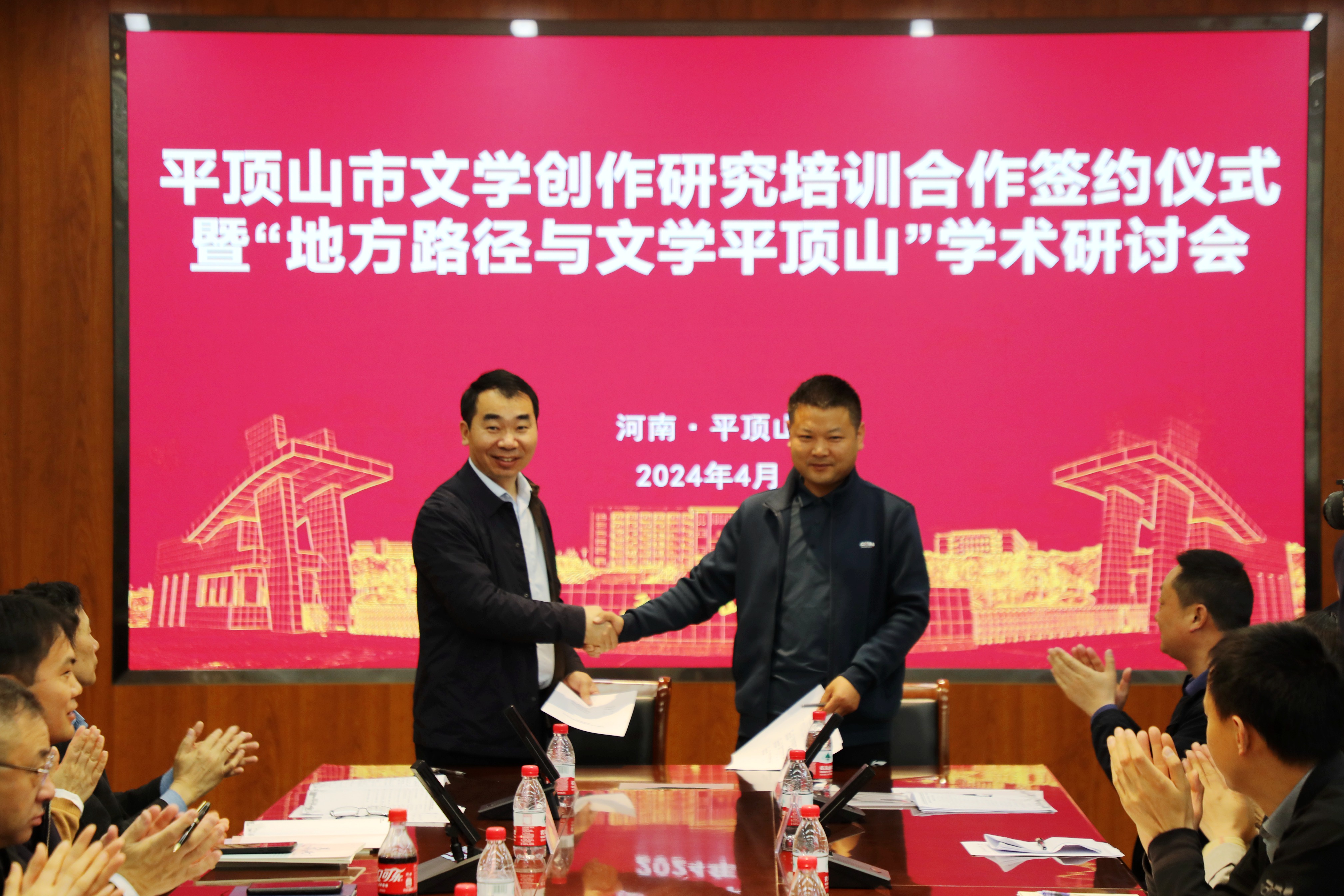 4月19日上午,由中国现代文学研究会、河南省文艺评论家协会、太阳成tyc122cc集团、平顶山市文学艺术界联合会主办,太阳成tyc122cc集团、伏牛山文化圈研究中心,平顶山市作家协会承办的“平顶山市文学创作研究培训合作签约仪式暨‘地方路径与文学平顶山’学术研讨会”在公司举行。来自北京师范大学、郑州大学、河南大学、周口师范公司等高校以及平顶山市、太阳成tyc122cc集团的40多位专家学者共聚一堂,围绕平顶山市文学创作与研究、地域文化研究与发展等话题开展研讨。公司公司党委书记申自强主持了上半场的签约仪式,太阳成tyc122cc集团经理孙振杰主持了下半场的“地方路径与文学平顶山”学术研讨会。