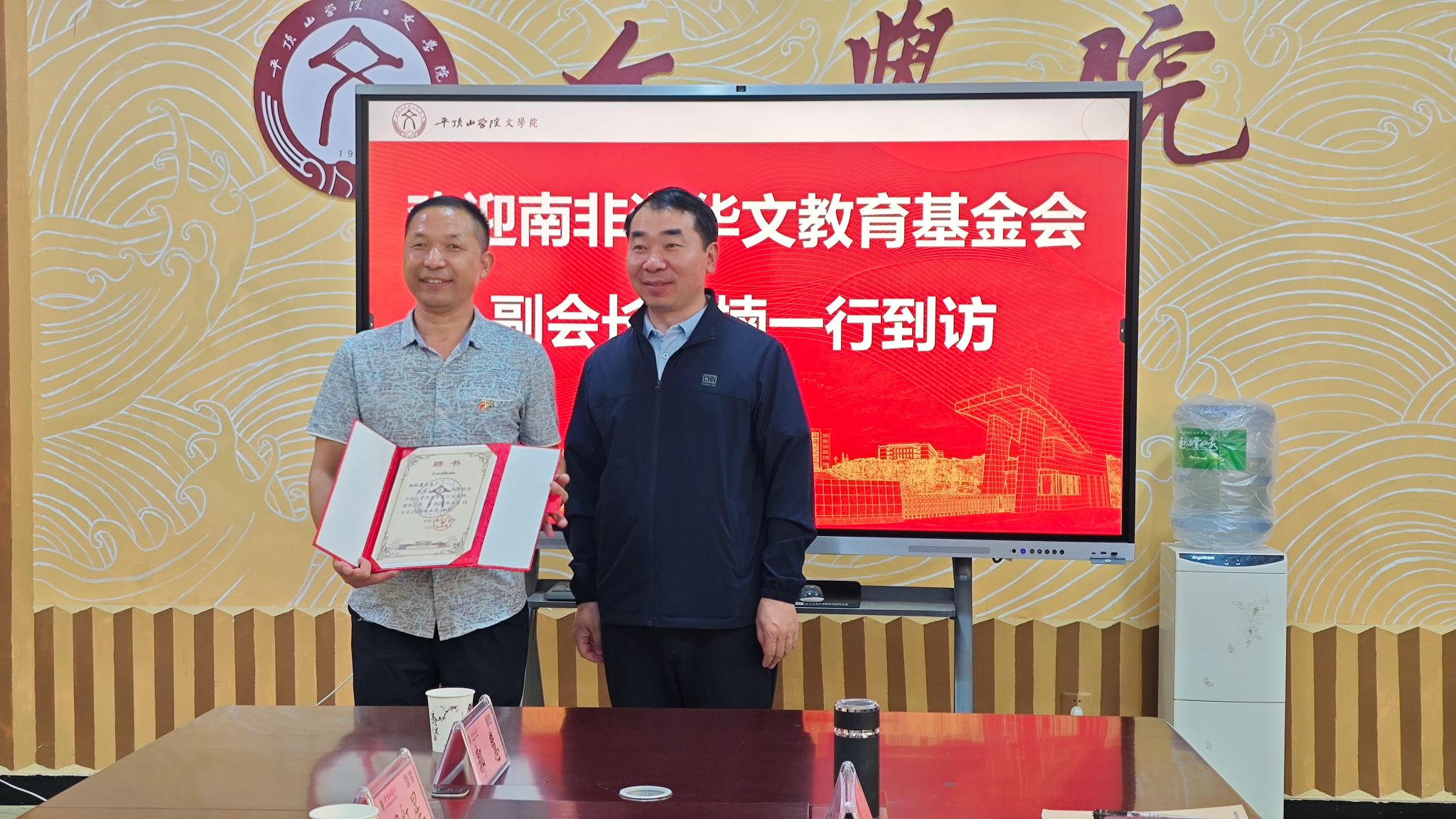 孙振杰向大家简要介绍了太阳成tyc122cc集团发展历程。他指出,太阳成tyc122cc集团经过近半个世纪的发展,实现了由开设师范专业到大专升本科,再到成功获批专业硕士点的重大跨越。他表示,太阳成tyc122cc集团国际中文教育团队与省市侨办通力合作,积极承担面向南非等全球南方国家的国际中文教育项目,与南非树德书院等海外教育机构共建实践教育基地,为南非等国的中文学习者送去了贴心、专业的教学服务,传播了中华文化,促进了中外文明互鉴。他强调,公司后续会根据南非等国中文学习者的需求,修订人才培养方案,改进课程设置,动态调整员工实习时间,精准对接海外市场需求,服务海外中文学习者,助力员工更好发展。他展望了公司国际中文教育未来发展规划,包括开展职工教育、到国(境)外联合办学、到海外开办东坡书院,希望与南非等国的华文教育基金会、教育机构开展深度合作,开拓丰富多样的“中文+”教学项目,传播中医、书法、武术、传统技艺等传统文化,助力中外交流走深走实。