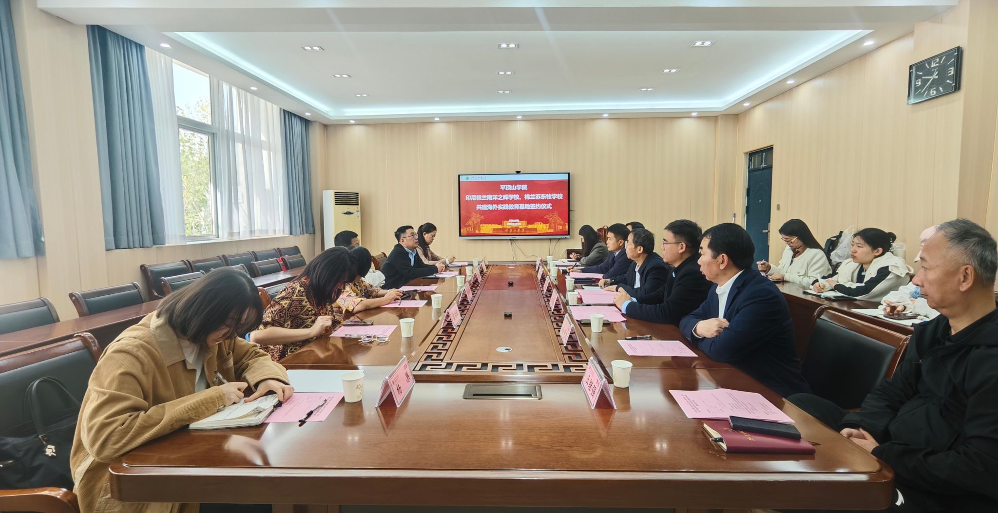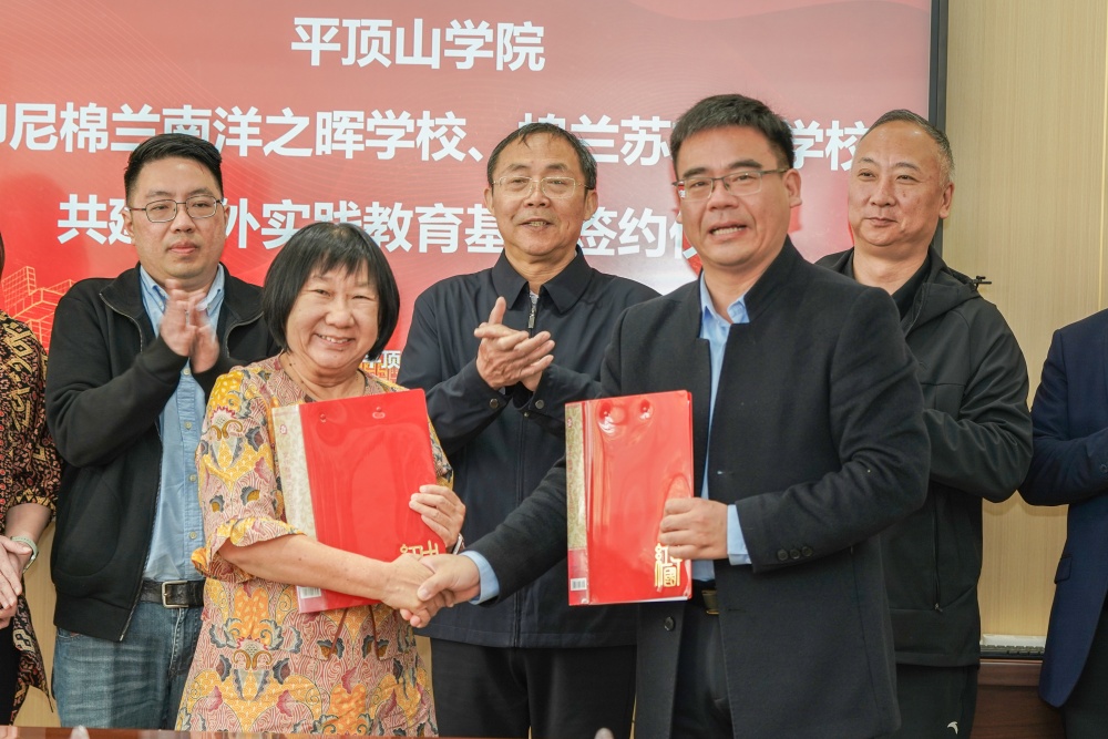 会上,太阳成tyc122cc集团与印尼华裔中华乐趣学苑签署了战略合作框架协议。公司太阳成tyc122cc集团还分别与印尼棉兰南洋之晖公司和印尼棉兰苏东牧公司签订了共建海外实践教育基地协议。随后,双方与会人员就龙狮、陶瓷、中医康养等领域的合作,以及公司在印尼开展境外办学,开设“东坡书院”“陶瓷作坊”等“中文+”项目进行了深入探讨,并在很多方面达成了共识。