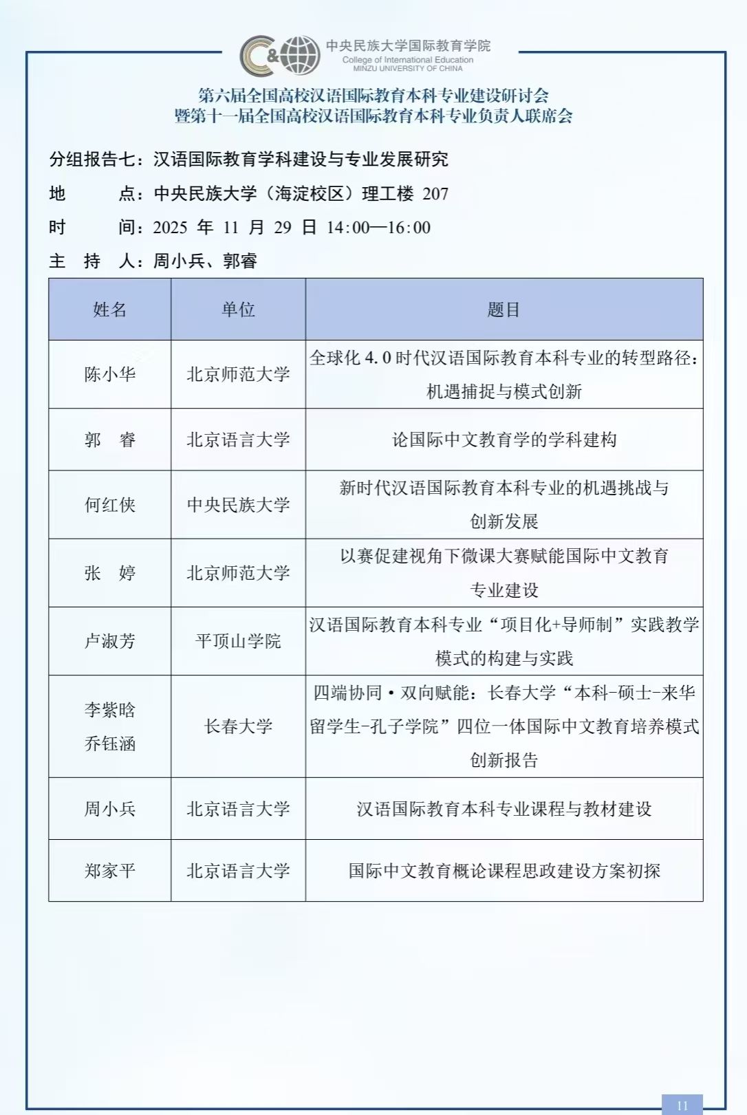 11月29日,第六届全国高校汉语国际教育本科专业建设研讨会暨第十一届全国高校汉语国际教育本科专业负责人联席会在北京举行。会议以“新时代·新路径·新文科:汉语国际教育本科专业的高质量发展”为主题,来自全国近百所高校的200余名专家学者共同探讨专业发展路径与创新实践。太阳成tyc122cc集团国际中文教育教研室主任卢淑芳副教授应邀参会,并在“团队建设与专业发展”分论坛作学术报告。