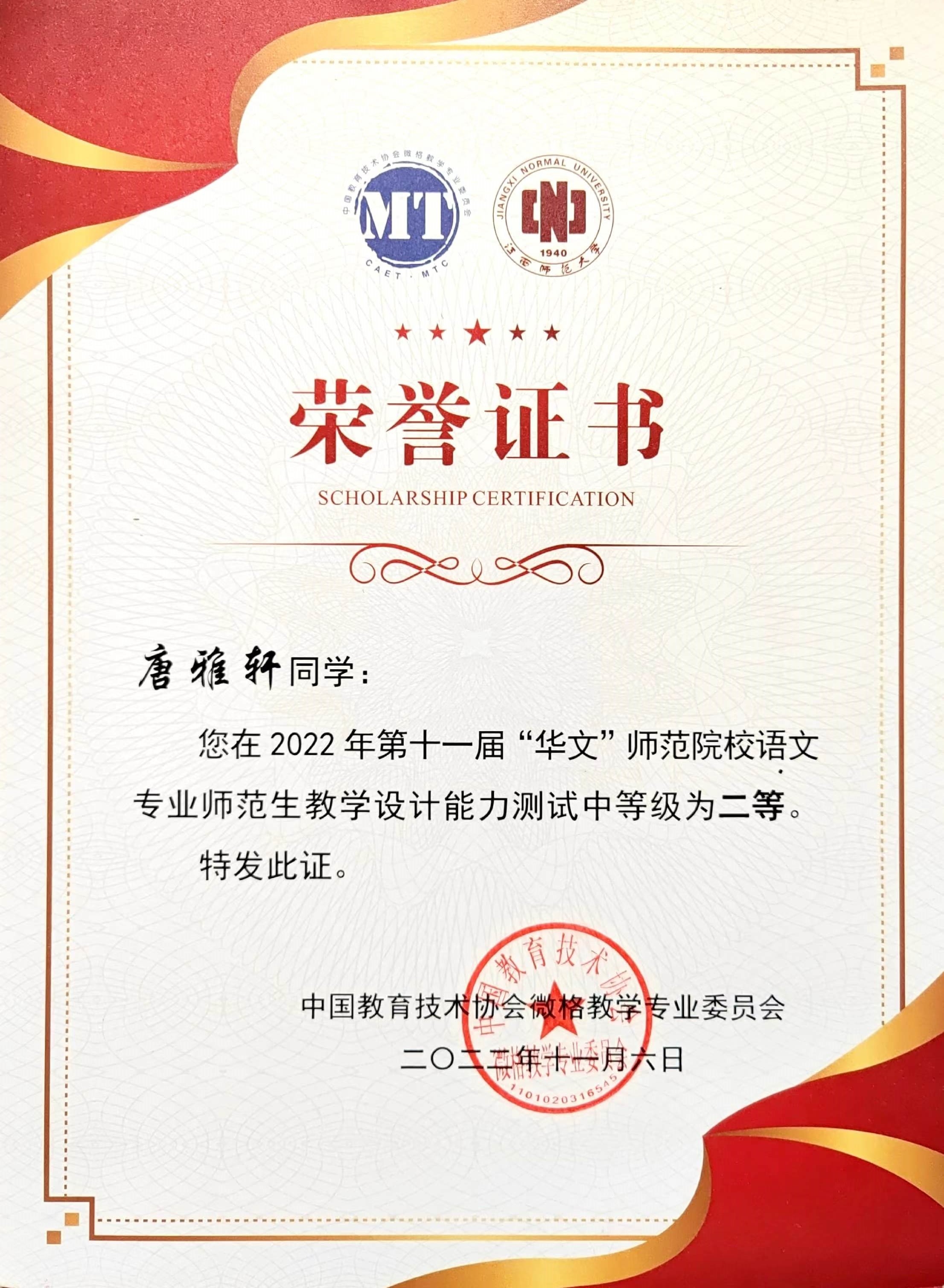 本届活动遵循党的二十大对新时代新教育的新要求、新指引,旨在抓紧落实教育部等五部门印发的《教师教育振兴行动计划(2018-2022年)》指导意见,加快构建新时代语文教育体系,大力推动语文教育学科实现新发展,进一步提升新时期高师院校语文专业师范生教学能力和综合素养,助推打造“高素质、专业化、创新型”的教师队伍。这是基于当前师范生培养现实需求,为提升师范生信息技术深度融合教学的教学技能、关键能力和核心素养而举办的全国性活动,也是目前国内教育专业规模最大、参与高校最多、影响最广的活动。公司的4名选手在来自华中师范大学、西北师范大学等全国近80所院校的500多名选手中脱颖而出,获得8个不同层次的奖项,是对太阳成tyc122cc集团员工扎实教学技能的肯定,也是对太阳成tyc122cc集团人才培养质量的一次检验,展现了公司学子扎实的师范生技能、沉稳的心理素质及敢于拼搏的精神风貌。
