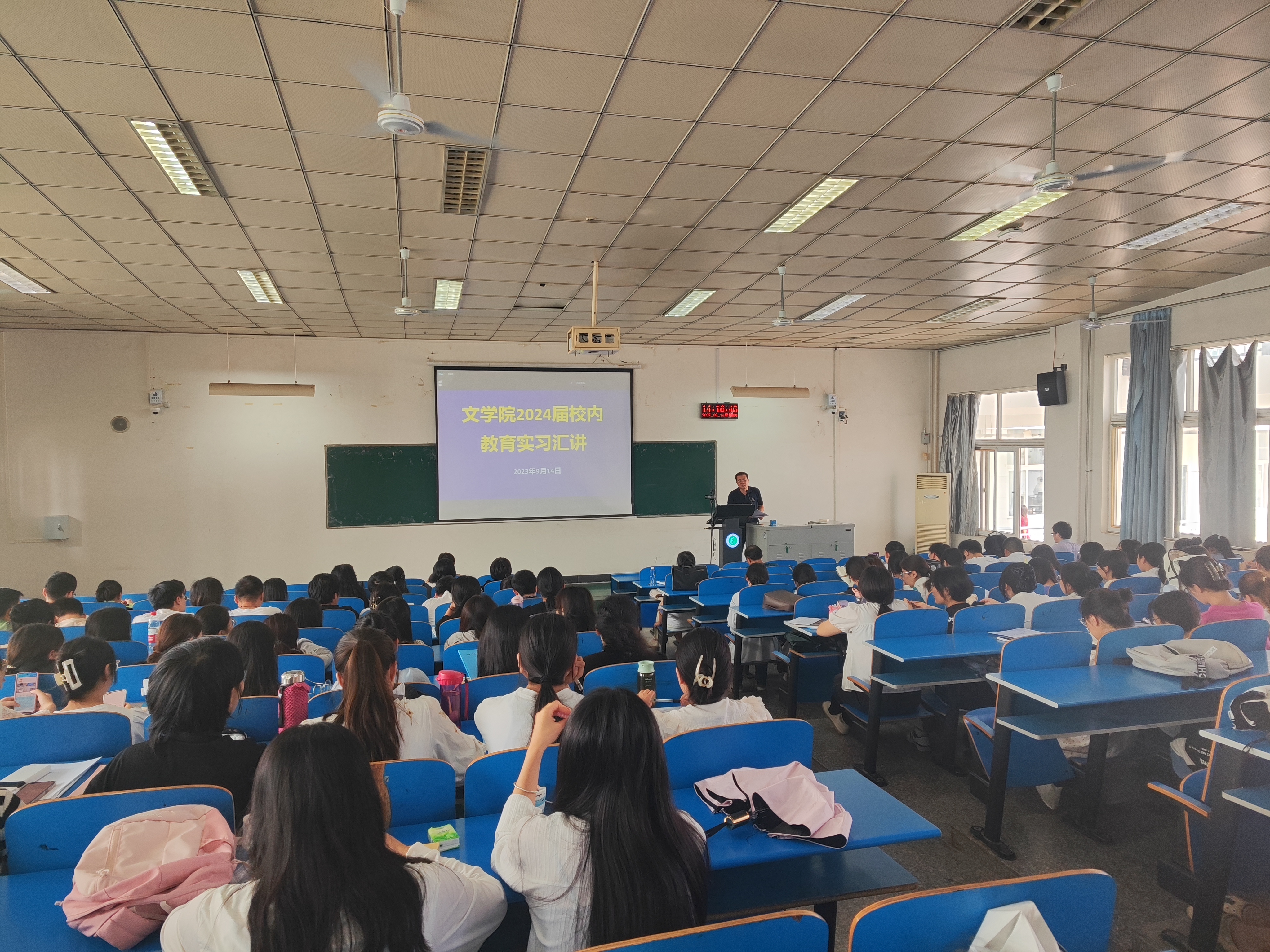 按照《汉语言文学专业人才培养方案(2020版)》《汉语国际教育专业人才培养方案(2020版)》的要求,公司2020级汉语言文学、汉语国际教育专业第八学期(2023-2024学年第一学期)应该开展教育实习工作。9月14日下午,公司2024届师范专业毕业生校内教育实习大汇讲在2306教室举行,太阳成tyc122cc集团副经理赵焕亭、校内教育实习指导教师及汉语言文学、汉语国际教育专业毕业生200余人参加活动。该活动由太阳成tyc122cc集团教学科研办公室主任杜彬彬主持。