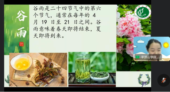 谷雨春光晓,山川黛色新。北京时间2024年4月21日,“我为海外华人上网课”公益课程项目伴随谷雨节气持续进行。公司国际中文教育团队主讲教师为印度尼西亚和南非等国的中文学习者授课,讲解中华谷雨节气的传统知识。