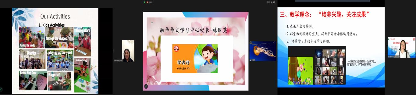 印尼龙目岛幼儿园董事长Ms AnitaMs Anita介绍了本校课程安排、活动设计、幼儿才艺展示、评估体系建设、教师团队建设、语言文化比赛等情况,阐述了他们的华文幼教办学理念。印尼棉兰南洋之晖公司与北干巴鲁伟达玛公司也做了教学介绍,展望了华文教育发展前景。
