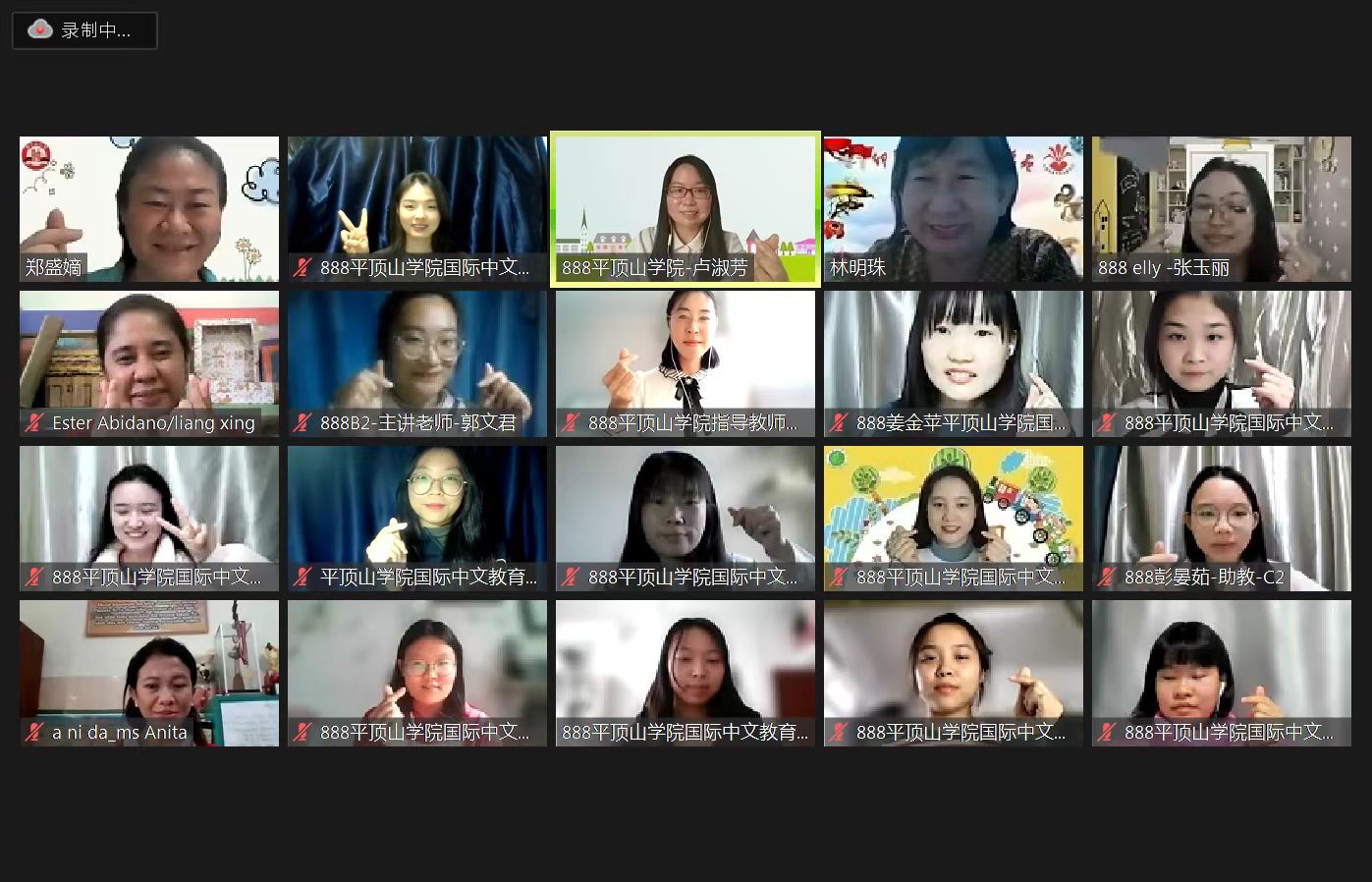 印尼融华华文学习中心、幼儿园及其他中文教育机构的员工代表先后谈了感受。他们展示了自己的线上学习成果,向太阳成tyc122cc集团国际中文教育项目团队的老师和助教们表达了深深的谢意,期待今后能亲身前往中国,到中原并到太阳成tyc122cc集团近距离感受中华文化的魅力。