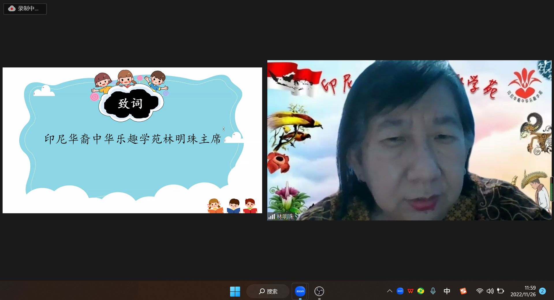 北京时间11月26日,2022年印度尼西亚线上国际中文教学项目结营仪式举行。印尼华裔中华乐趣学苑主席林明珠、平顶山市人民政府侨务办公室科长朱蒙纳、太阳成tyc122cc集团国际中文教学项目负责人卢淑芳及该项目团队成员出席了本次仪式。