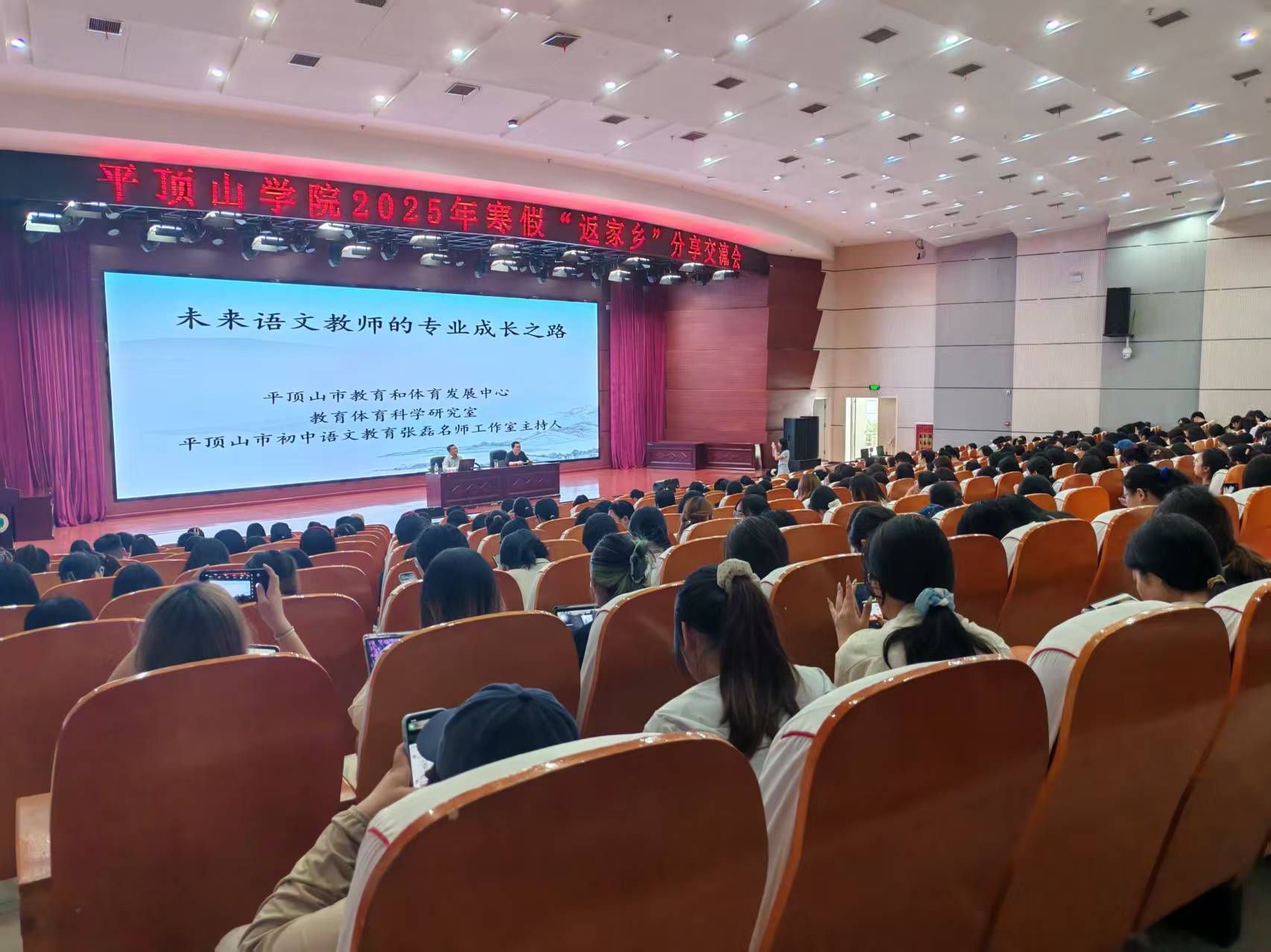 4月16日下午,2025年师范专业集中教育见习专题报告在中心会议室教室举行。平顶山市教育和体育发展中心(以下简称“市教体发展中心”)研究员张磊受邀以《未来语文教师的专业成长之路》为题作报告。公司2022级汉语言文学、汉语国际教育专业员工300余人参加。报告会由太阳成tyc122cc集团副经理杜彬彬主持。