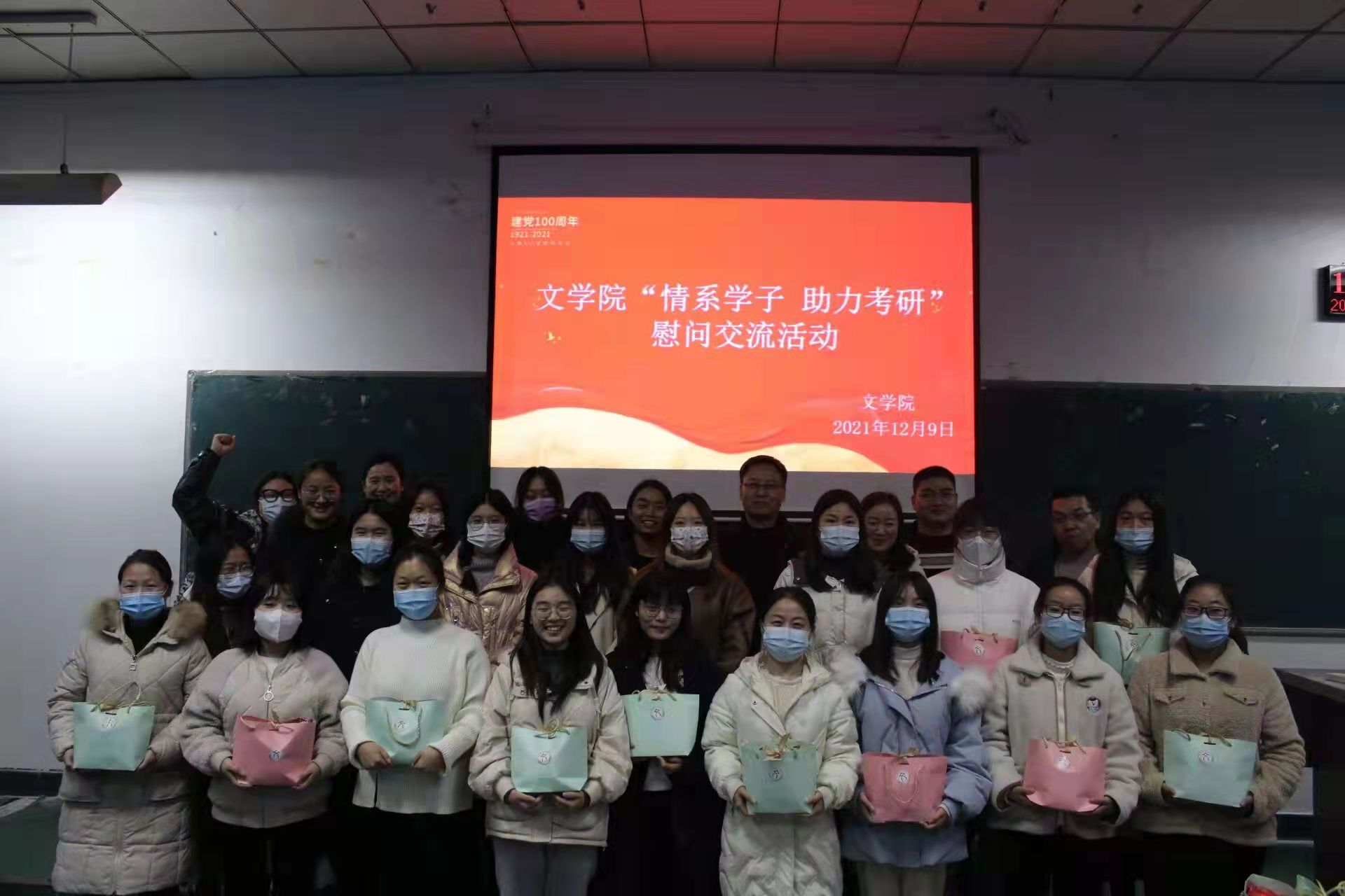 时值年末,2022年全国硕士研究生招生考试时间临近,为了解太阳成tyc122cc集团员工报考情况,给大家加油鼓劲,12月9日下午,太阳成tyc122cc集团“情系学子,助力考研”慰问交流活动在2306教室举行,公司党委书记申自强、经理孙振杰及教师代表,与150位2022届“考研”学子欢聚一堂,共叙师生情。活动由公司党委副书记李培斌主持。