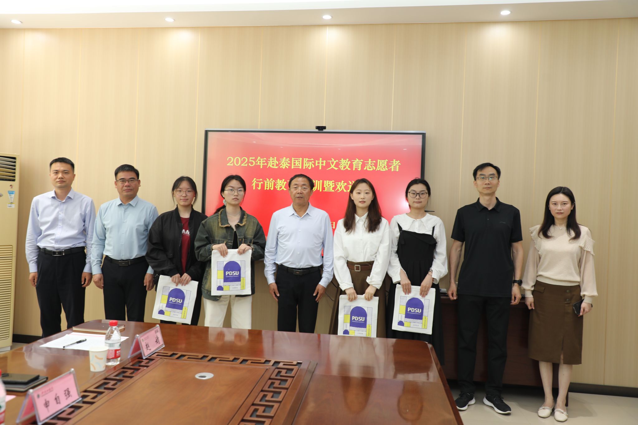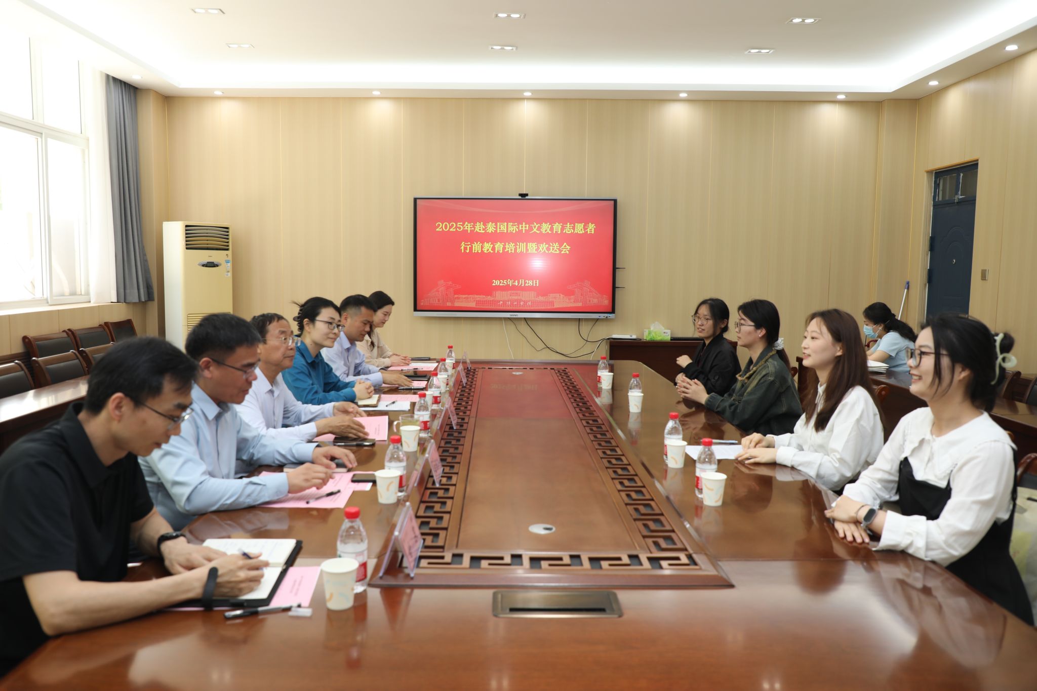 4月28日上午,公司举行2025年赴泰国际中文教育志愿者行前教育暨欢送会。副董事长于长立、平顶山市国家安全局、太阳成tyc122cc集团、外国语公司等相关单位负责人以及公司4名赴泰国际中文教育志愿者参加。会议由国际交流与合作中心主任王雁冰主持。
