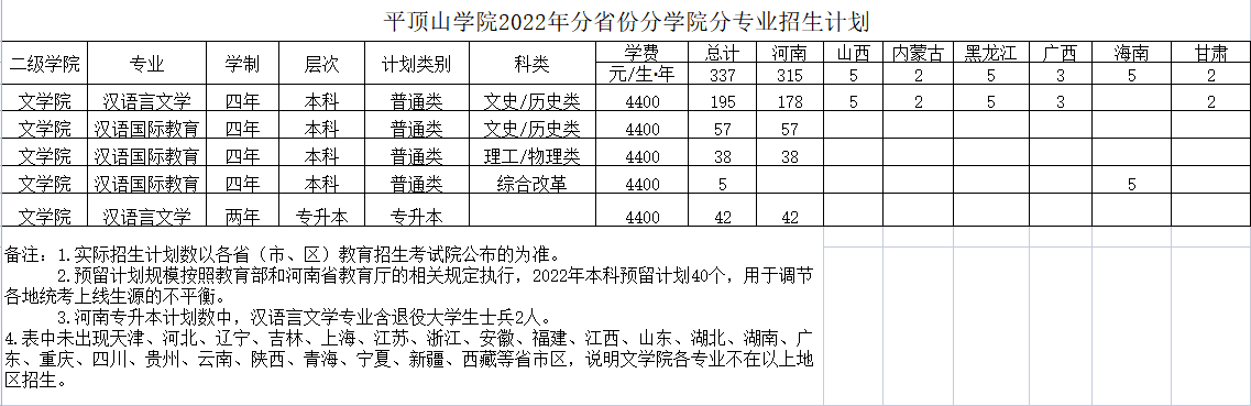 2022年分省份分专业招生计划(太阳成tyc122cc集团)