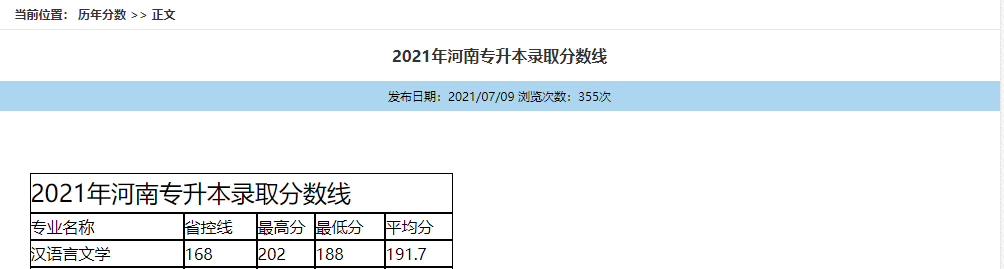 2021年专升本录取分数线