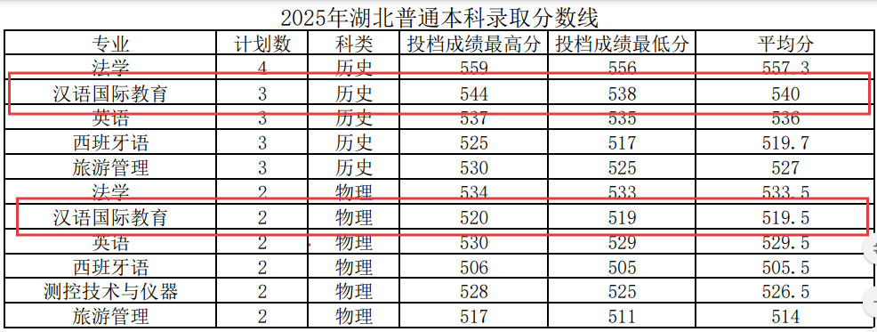 说明:汉语国际教育专业2025年首次在湖北省招生。