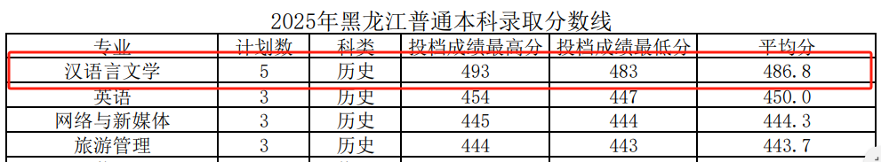 2025年黑龙江普通本科录取分数线