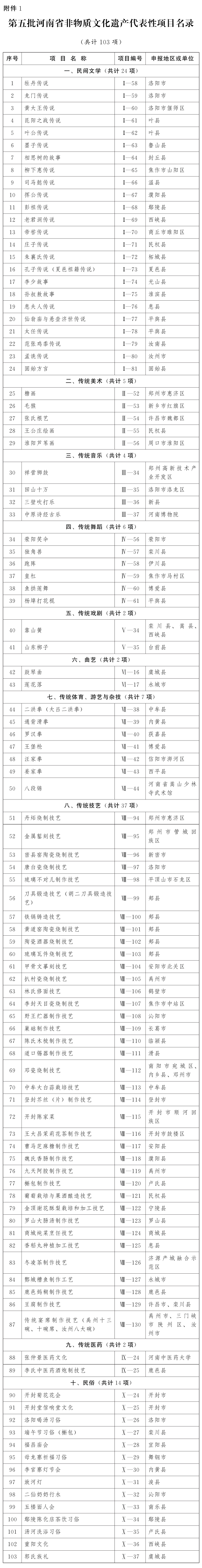 名单目录 | 第五批河南省省级非物质文化遗产代表性项目名录及扩展项目名录(共计185项)