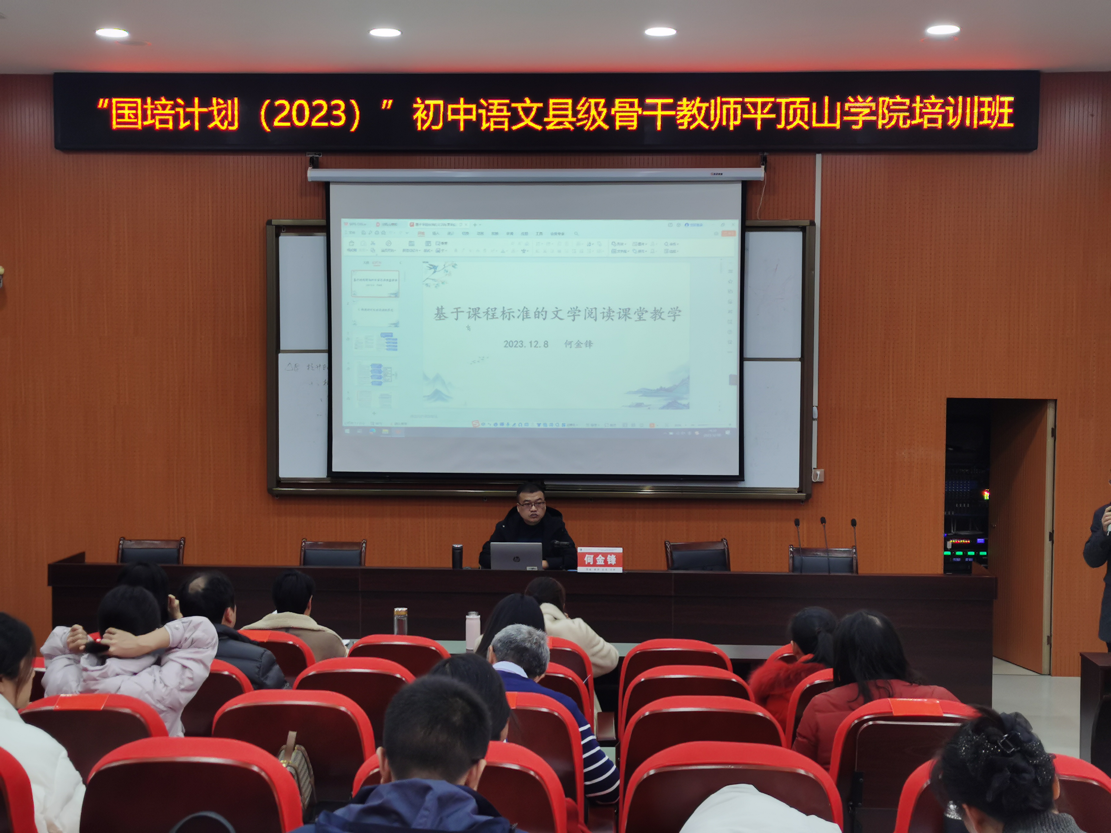 12月8日上午,平顶山市教体局教育科学研究所研究员张磊老师为“国培计划2023”培训班学员作题为《初中语文整本书阅读策略》的专题报告。培训班学员50人参加。