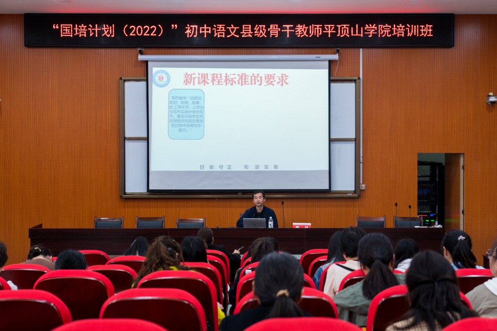 4月14日上午,河南省骨干教师、平顶山市第九中学语文教师梅林为国培计划(2022)培训班学员作题为《初中作文习作评价活动开展的原则和方法》的专题报告,培训班学员50余人参加。