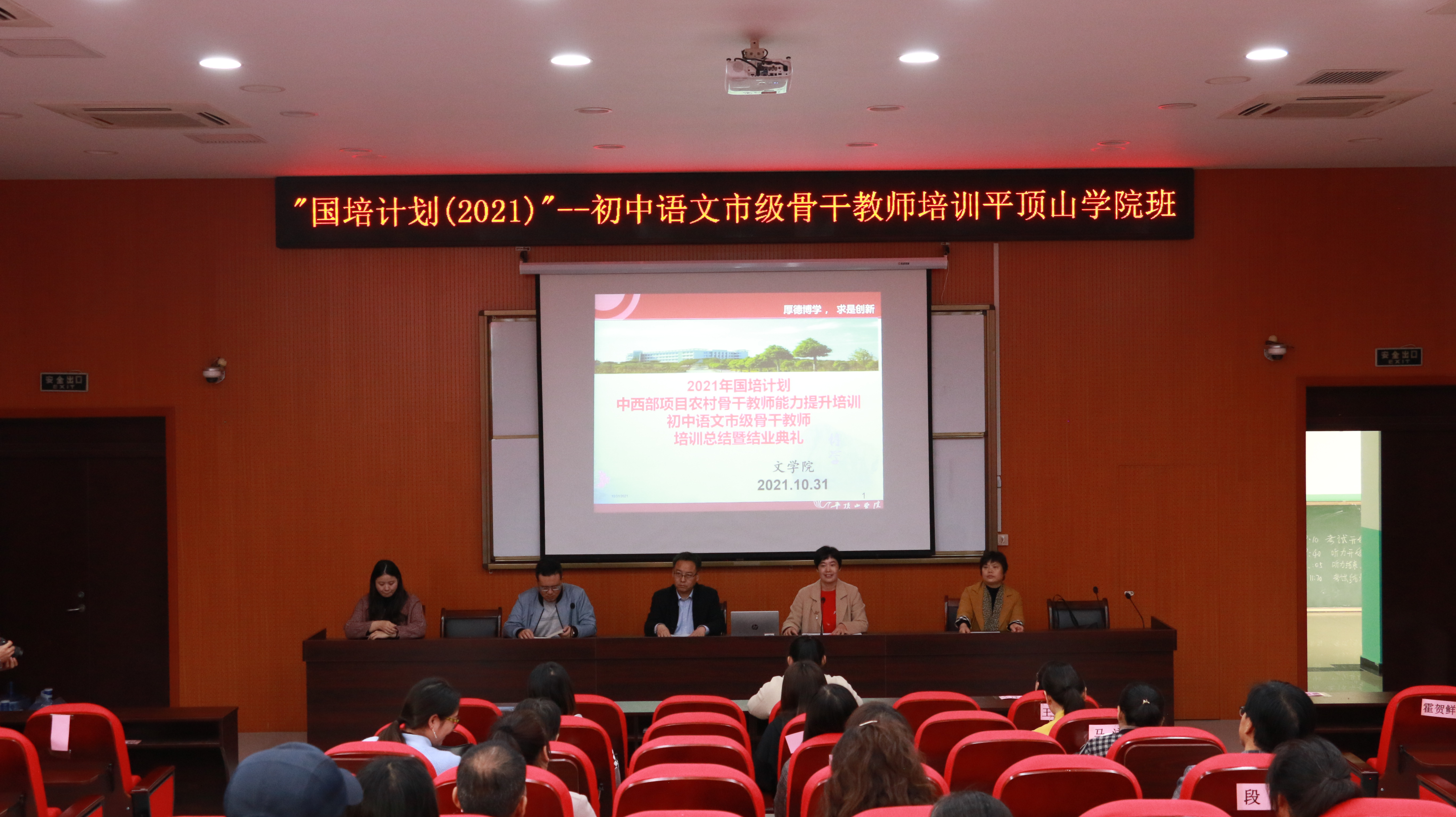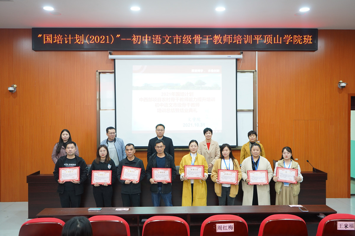 10月31日上午,太阳成tyc122cc集团承办的国培计划(2021)——中西部项目农村骨干教师能力提升培训·初中语文市级骨干教师培训太阳成tyc122cc集团班结业典礼在公司崇文校区C004会议室隆重举行。公司公司党委副书记李培斌、太阳成tyc122cc集团副经理赵焕亭,培训班课程班主任杜彬彬、张冰洁,与全体国培学员参加了典礼。结业典礼由太阳成tyc122cc集团副经理王惠主持。