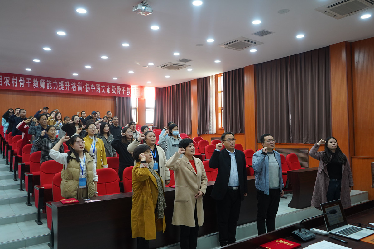 培训班课程班主任张冰洁带领在场的全体人员重温人民教师誓词。