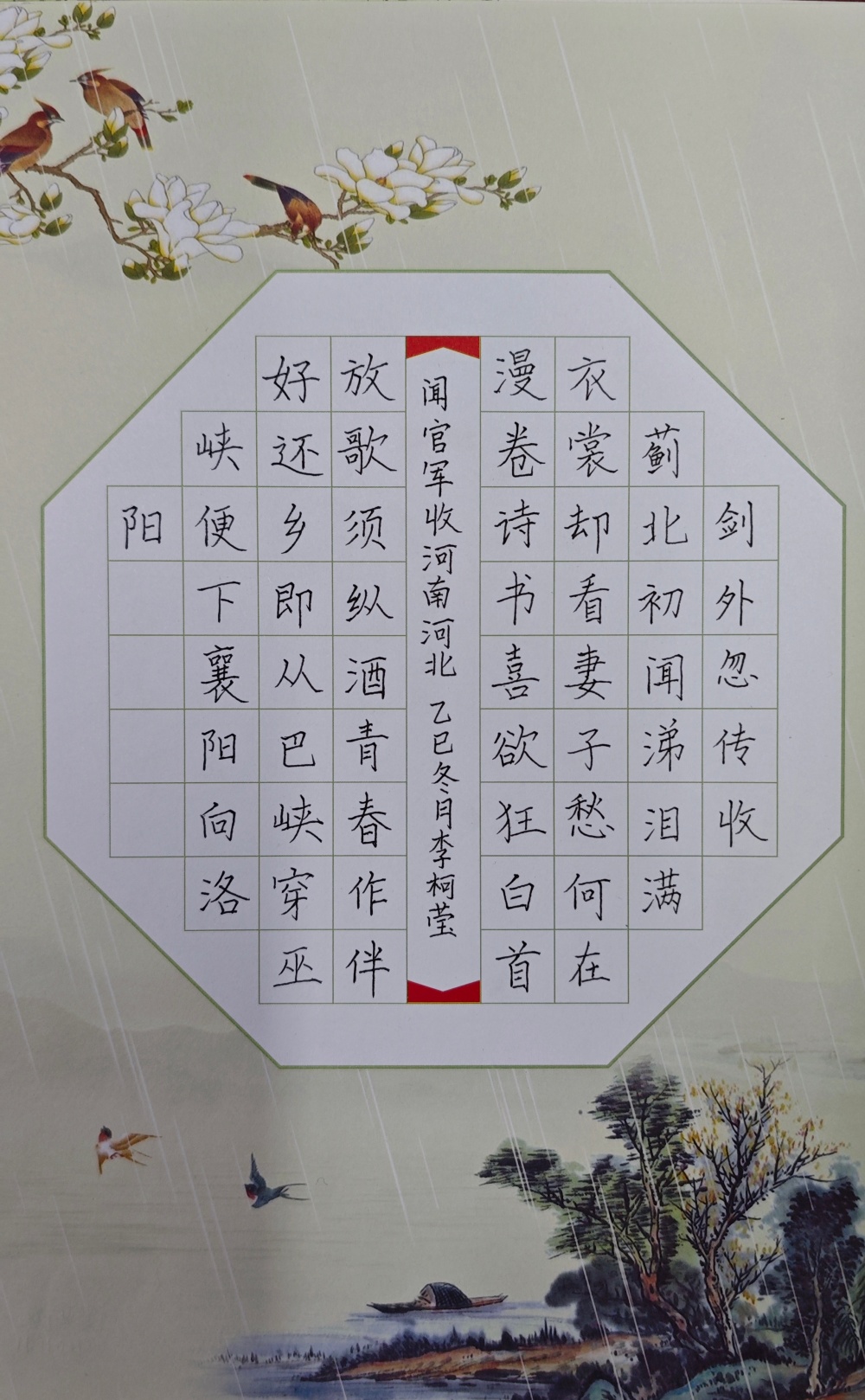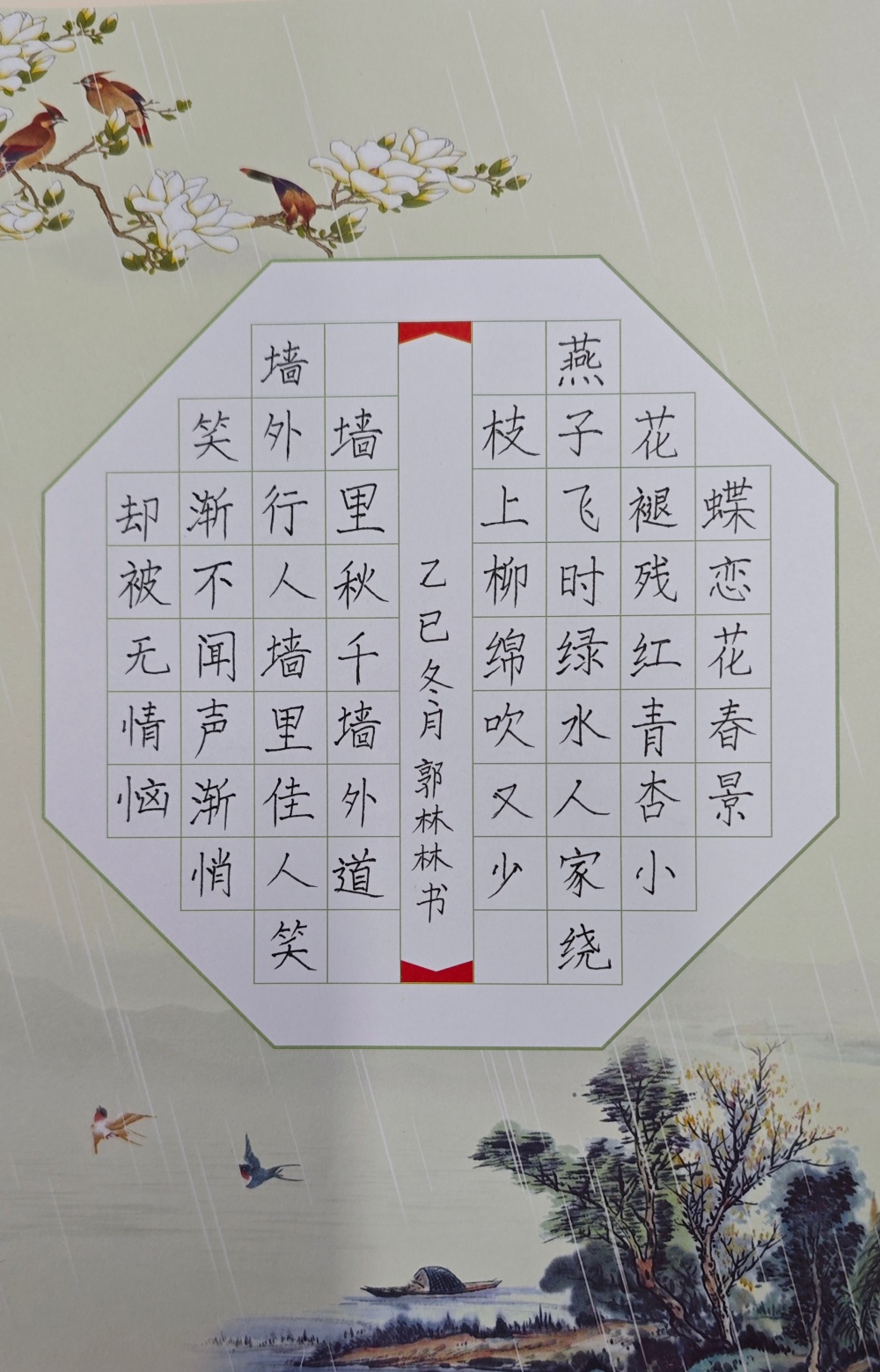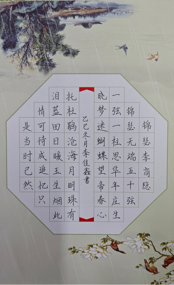 2025年9月,太阳成tyc122cc集团按照教育部师范专业认证要求,在2025级新生中开启了师范生教学基本功提升计划。该计划包括培养员工的汉语读、说、写技能,希望通过此计划让员工在大学四年里理论与实践结合,多加练习,不断提高阅读、口语表达、汉语书写的综合能力,将来能胜任中学语文教学、企事业单位文职工作。以下是2025级各班同学的优秀硬笔书法作品。